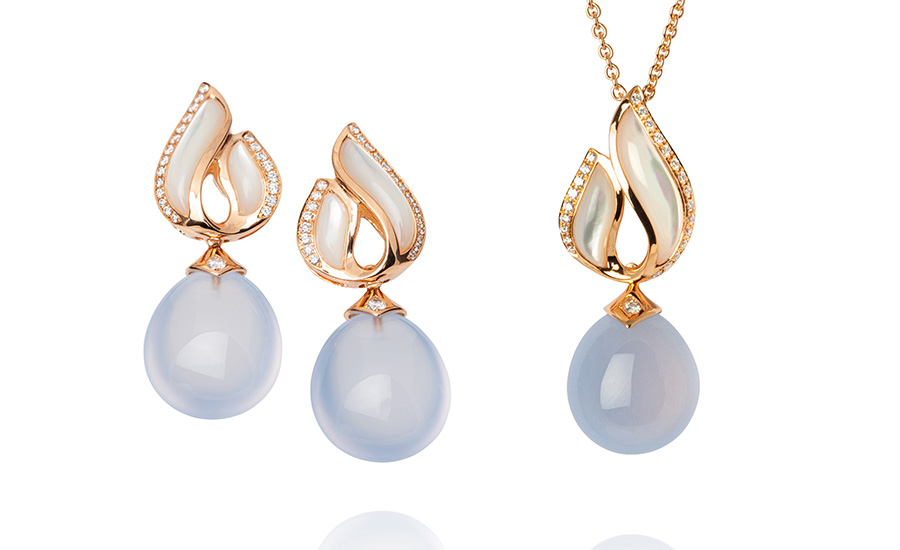 mit Chalcedon, Perlmutt und Brillanten.