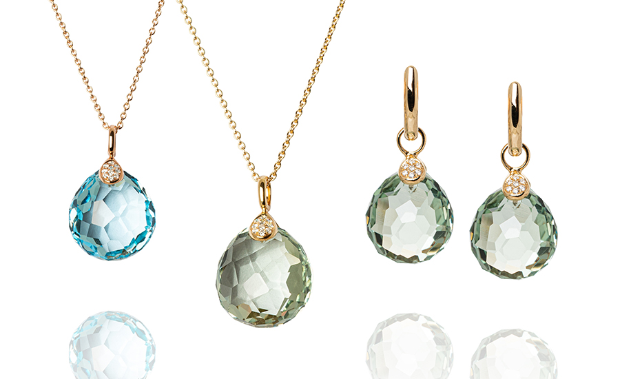 multi-facettiertem Blautopas, grünem Amethyst und Brillanten.